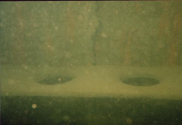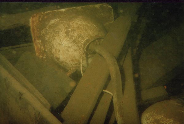 Istun polvillani kannella ja tasaan hengitystäni. Katselen ympärilleni ja annan silmien tottua vallitsevaan valoon. Kuvaan kameralla ympäristöä. Laitan hieman ilmaa pukuun. Lamppua ei tarvita. Katseeni osuu Jyrkiin, näytämme OK-merkit. Uin kameran kanssa edestakaisin pitkin kantta. Olemme jonkun kansirakennuksen katolla. Katson alas ja näen kannella vihreässä hämyssä olevan ison höyryvinssin. Annan Jyrkille merkin ja laskeudumme alas kannelle. Tarkistan mittarit. Syvyys 30 metriä ja ilmaakin on riittävästi. Kuvaan hetkisen vinssiä ja sen ympäristöä. Liikkuminen on hankalaa, kun kameran ja kaapelin tarkkailu vievät osan huomiosta. Päätän luopua kuvaamisesta ja nostan kameran kansirakennuksen katolle. Ehtiihän sitä myöhemminkin kuvata.