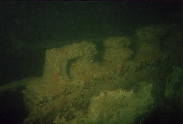 Istun polvillani kannella ja tasaan hengitystäni. Katselen ympärilleni ja annan silmien tottua vallitsevaan valoon. Kuvaan kameralla ympäristöä. Laitan hieman ilmaa pukuun. Lamppua ei tarvita. Katseeni osuu Jyrkiin, näytämme OK-merkit. Uin kameran kanssa edestakaisin pitkin kantta. Olemme jonkun kansirakennuksen katolla. Katson alas ja näen kannella vihreässä hämyssä olevan ison höyryvinssin. Annan Jyrkille merkin ja laskeudumme alas kannelle. Tarkistan mittarit. Syvyys 30 metriä ja ilmaakin on riittävästi. Kuvaan hetkisen vinssiä ja sen ympäristöä. Liikkuminen on hankalaa, kun kameran ja kaapelin tarkkailu vievät osan huomiosta. Päätän luopua kuvaamisesta ja nostan kameran kansirakennuksen katolle. Ehtiihän sitä myöhemminkin kuvata.